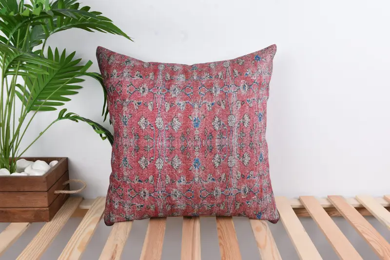 Rot & Bronze gestreiftes Kissen, besticktes Vintage-Kissen