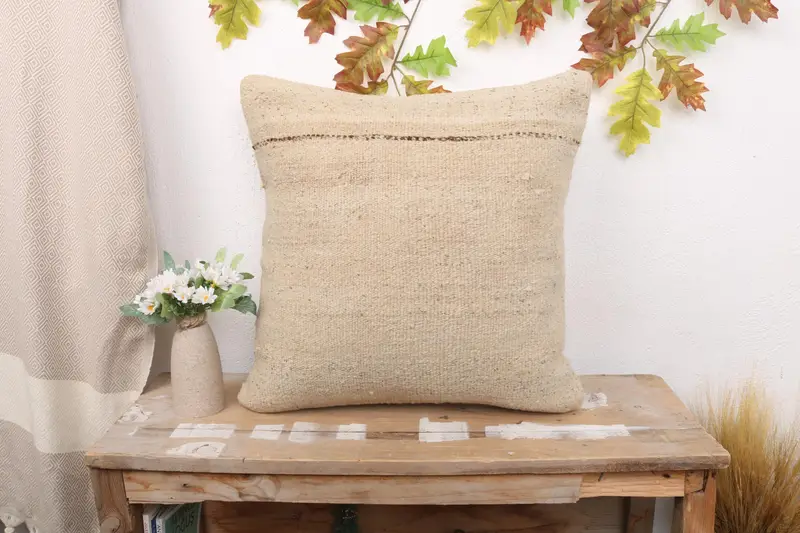 Besticktes Beige- und Braunes Wurfkissen, handgemachtes gestreiftes Kissen
