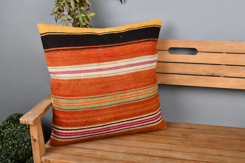 Orange & braun gestreiftes Kissen, handgefertigtes besticktes Kissen