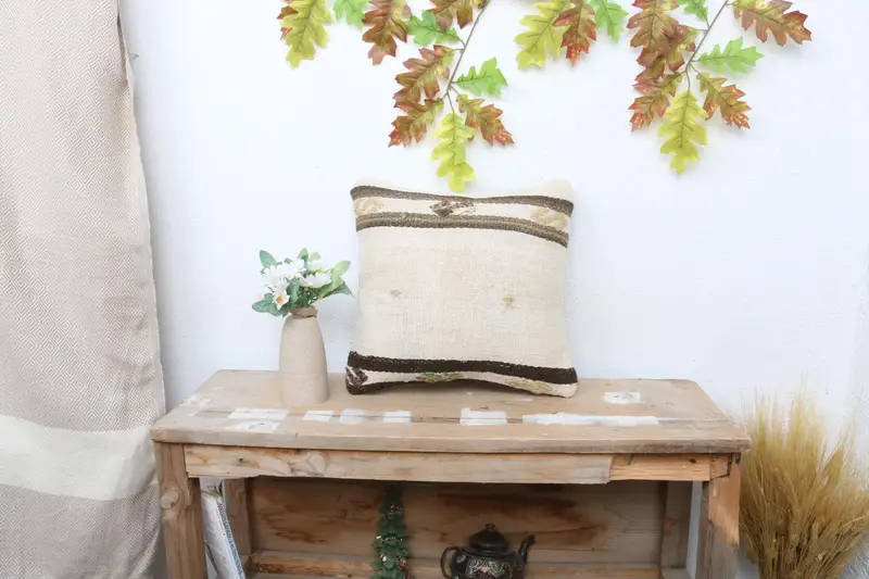 Handgefertigtes gestreiftes Kissen, 14x14 besticktes Kissen mit Vintage-Charme