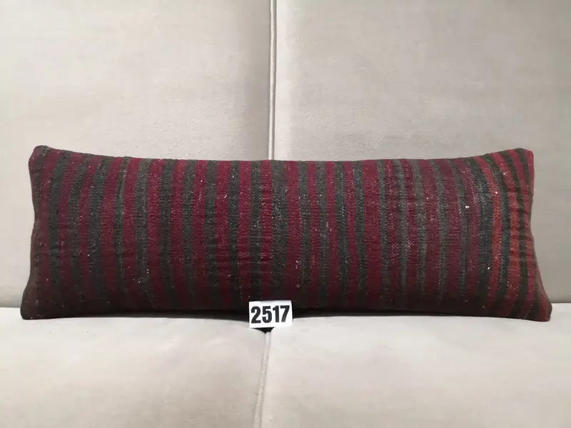 Rechteckiges rot-schwarz gestreiftes Wollkissen, handgefertigtes Dekokissen