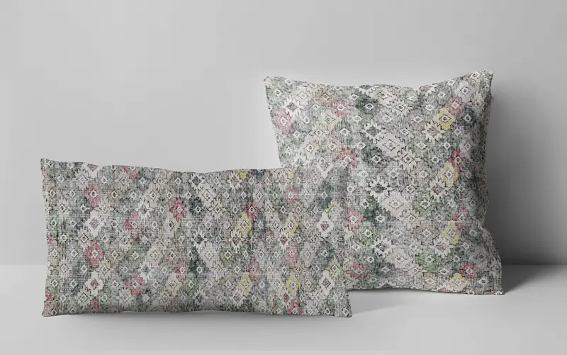 Handgefertigtes besticktes Kissen, südwestliches grünes und gelbes Rechteckkissen