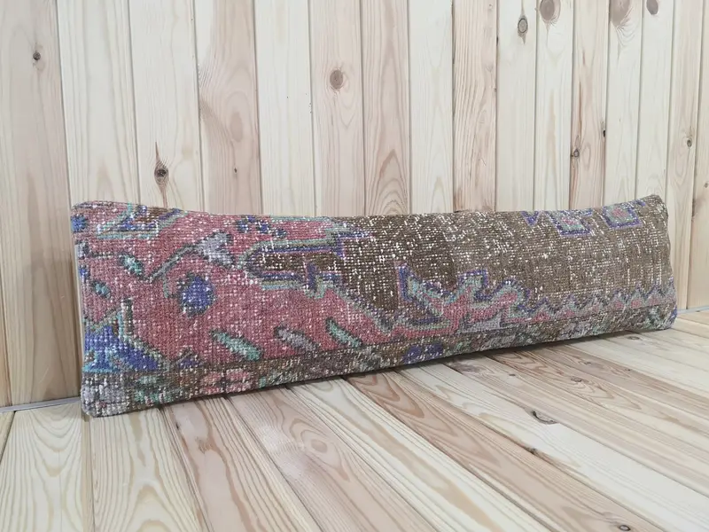 Handgefertigtes Wollkissen, braunes und rotes geometrisches Vintage-Rechteckkissen