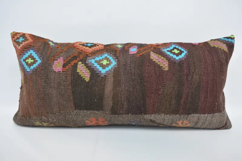 Geometrisches Wurfkissen in Braun und Bronze, 16x36 handgefertigtes Kissen