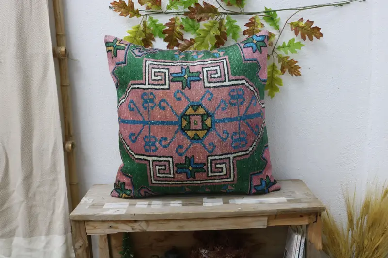 Handgefertigtes grünes Kelim-Wurfkissen, Vintage besticktes Kissen