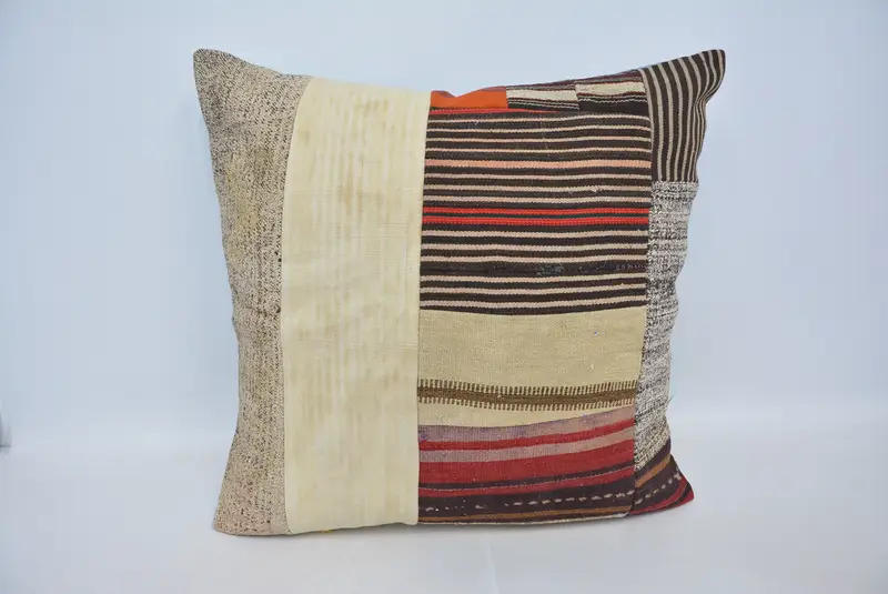 Handgefertigtes gestreiftes Beige- und Braun-Wurfkissen, vielseitiges quadratisches Kissen