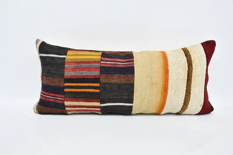 Braun-weiß gestreiftes Wurfkissen, 16x36 handgemachtes Kissen