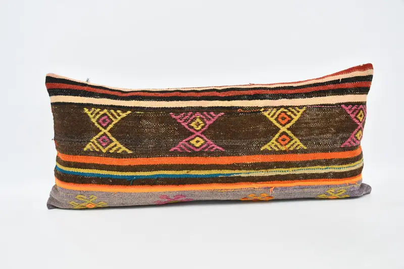 Handgefertigtes 16x36 Braun & Orange Wurfkissen, Vintage Rechteckkissen