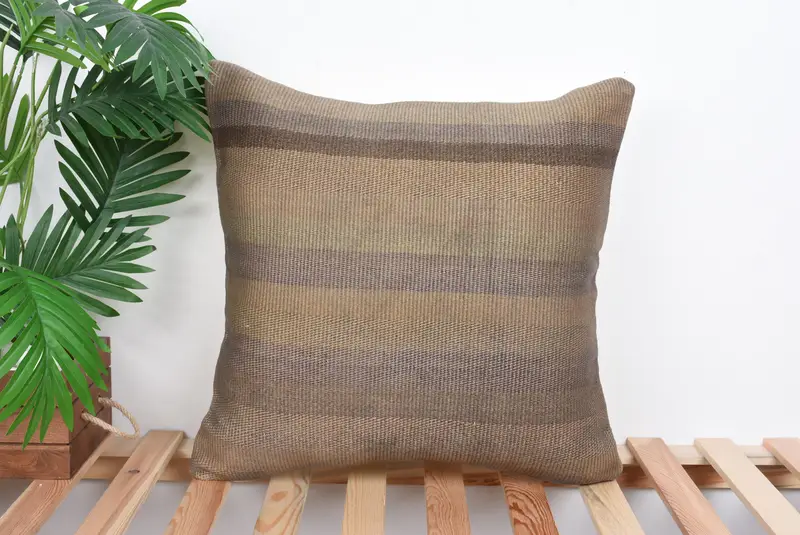 Braun gestreiftes besticktes Wurfkissen, handgemachtes Vintage Kissen