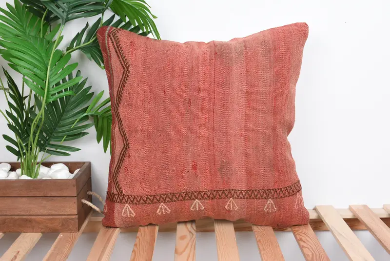 Rot-braun gestreiftes Wurfkissen, 20x20 besticktes Kissen