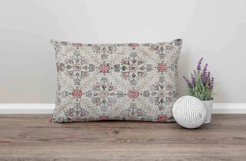 Gesticktes Southwestern-Wurfkissen, Vintage-Kissen in Beige und Rot