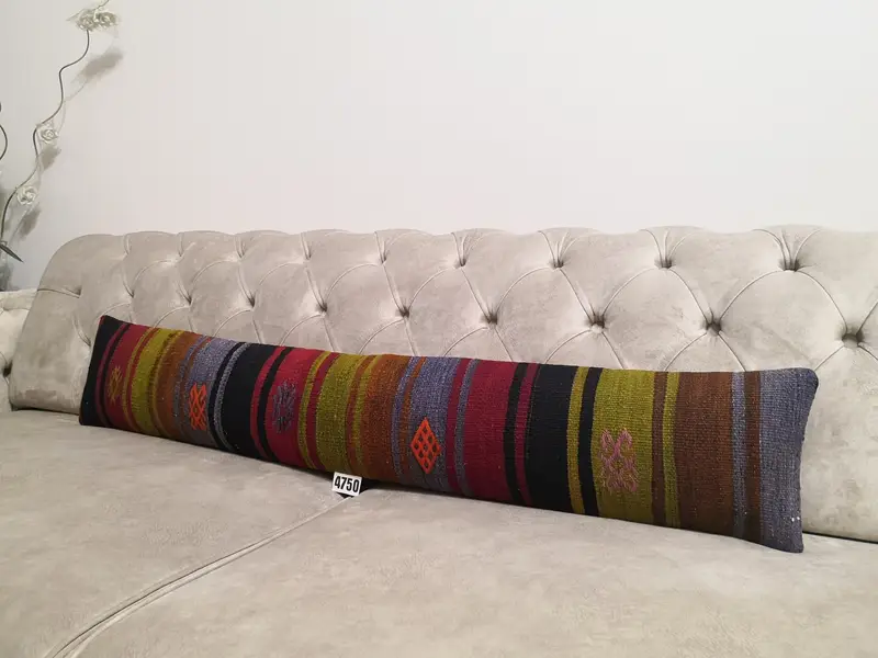 Handgefertigtes gestreiftes Wollkissen, Vintage-Rechteckkissen in Rot und Grün