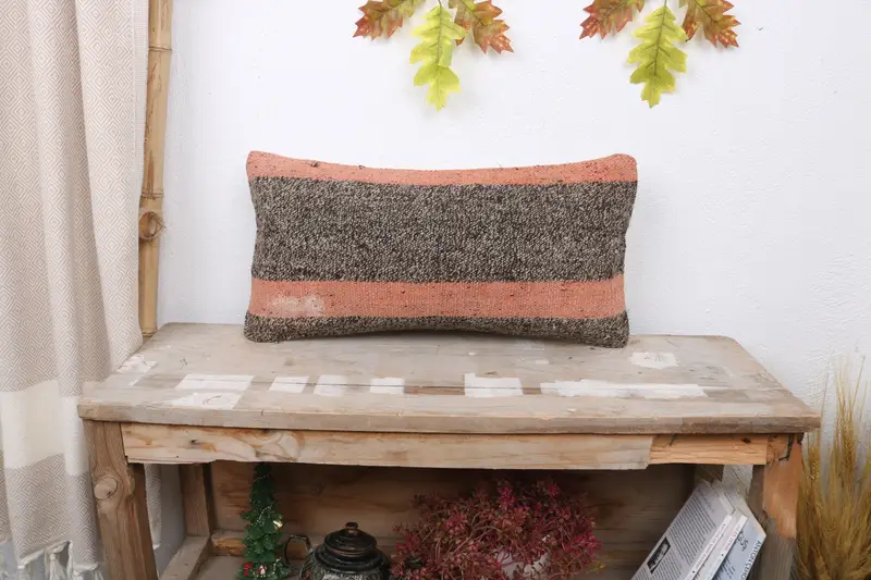 Braun & rot gestreiftes Kissen, handgemachtes rechteckiges Kissen