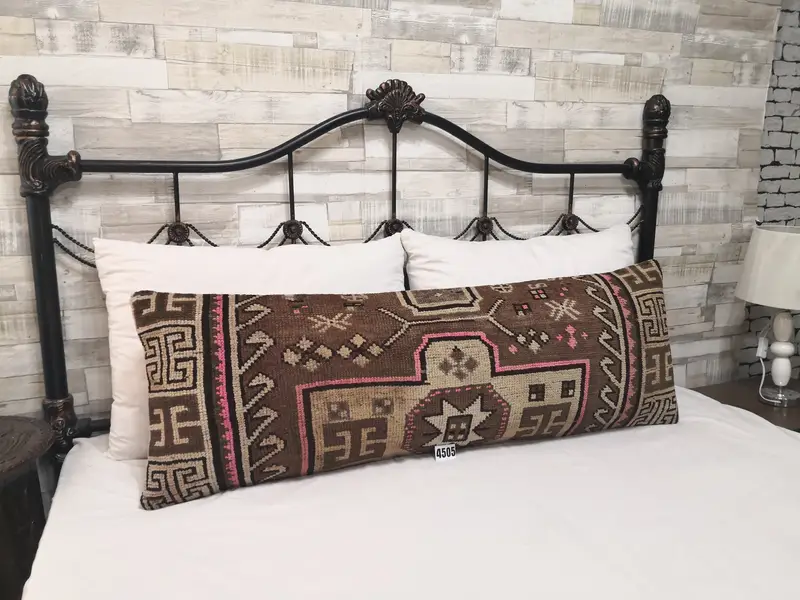 Handgefertigtes besticktes Wollkissen, 16 x 48 Zoll großes geometrisches Vintage-Kissen