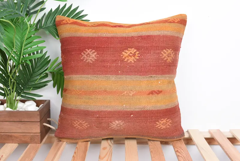 Rot & Orange gestreiftes Kissen, 20x20 handgemachtes Kissen