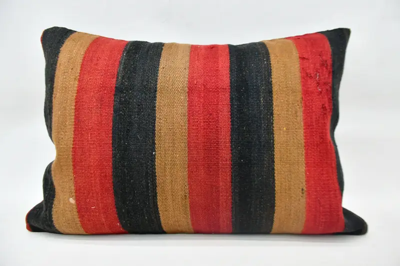 Rot-braun gestreiftes Kissen, handgefertigtes rechteckiges Kissen