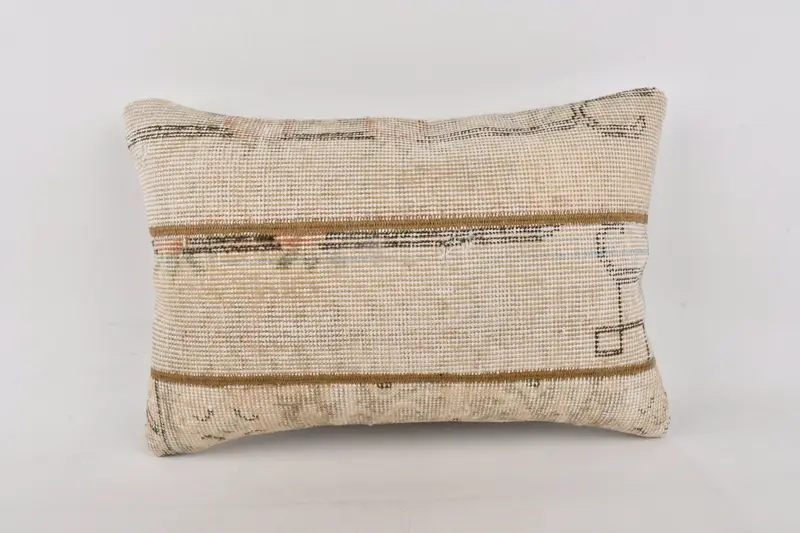 Beige & Braun besticktes Patchwork Kissen, handgemachtes rechteckiges Wurfkissen