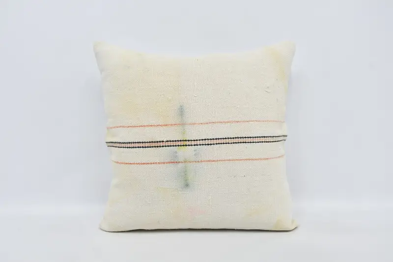 Handgefertigtes Kissen aus Hanf und Wolle, 28 x 28 cm, Vintage-Karokissen
