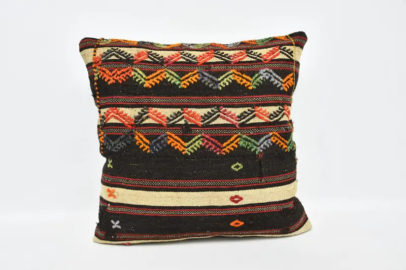 Braun und orange besticktes Wurfkissen, vielseitiges quadratisches Kissen im Format 28x28