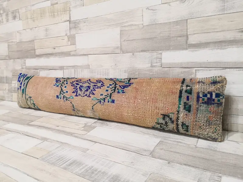 Handgefertigtes blaues und graues Blumen-Wurfkissen aus Wolle, Vintage-Rechteckkissen