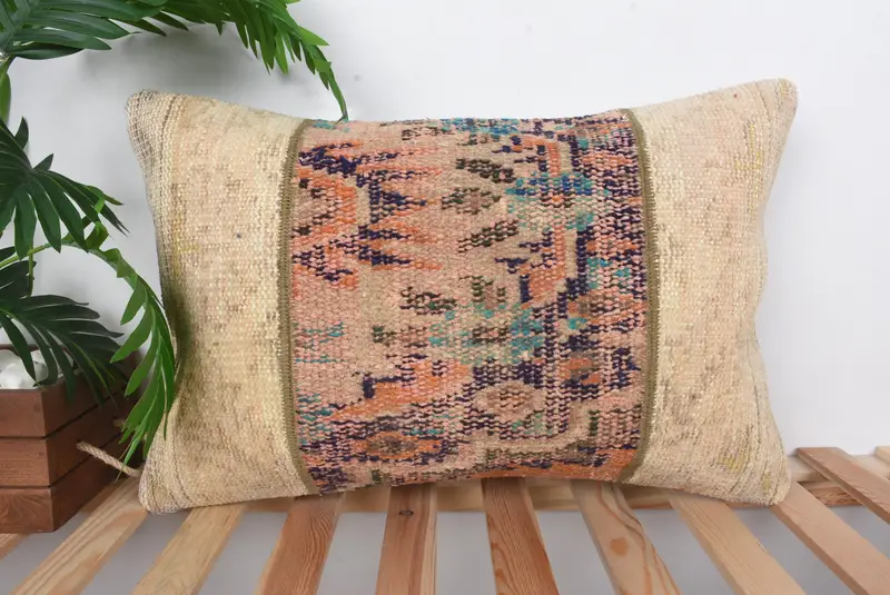 Blaues und beiges Patchwork-Wurfkissen, handgefertigtes besticktes Kissen