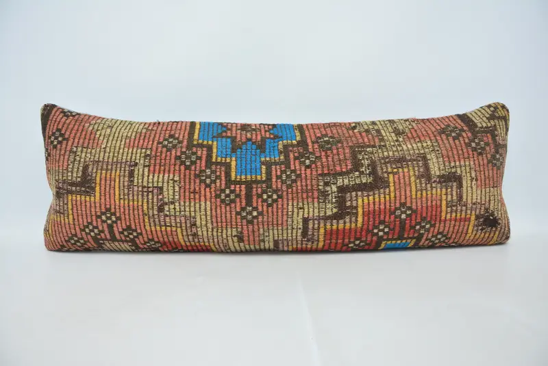 Rot & Bronze besticktes Hanfkissen, Vintage Polka Dot Kissen