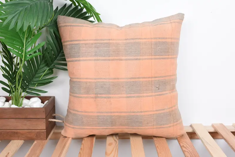 Orange und grau gestreiftes Wurfkissen, besticktes Vintage-Kissen