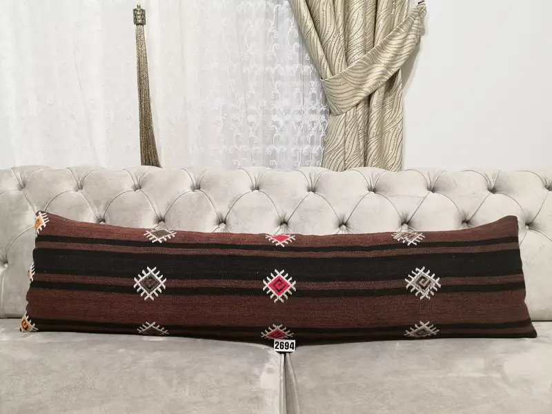 Handgefertigtes gestreiftes Wollkissen, 12x48 Zoll Vintage Rechteckkissen