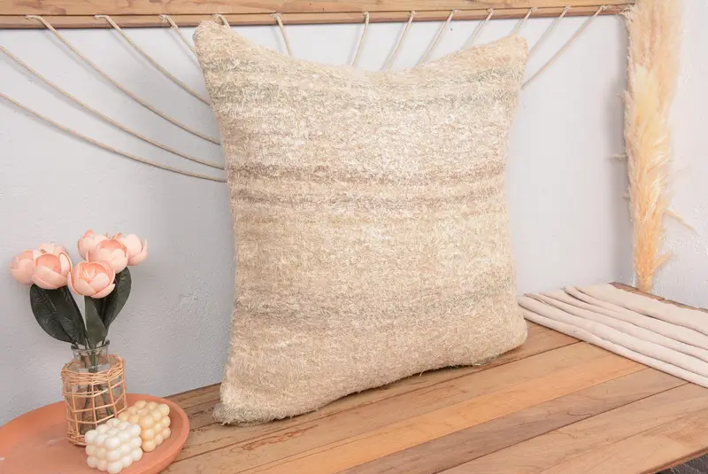 Gesticktes Streifenkissen, 28x28 handgemachtes Wurfkissen