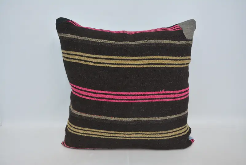 Braun und rosa gestreiftes Kissen, besticktes Vintage-Kissen
