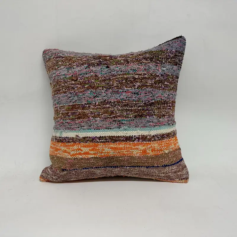 Besticktes lila und grünes Streifen-Wurfkissen, handgefertigtes Vintage-Kissen