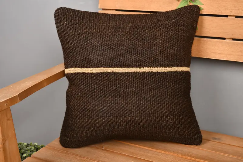 Braunes Patchwork-Wurfkissen, besticktes Vintage-Kissen
