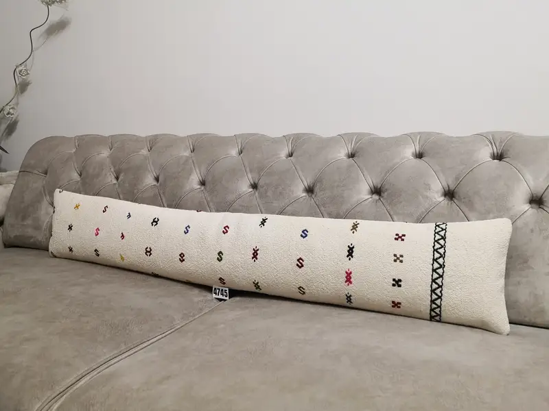 Handgefertigtes rechteckiges Wurfkissen, besticktes Vintage-Baumwollkissen