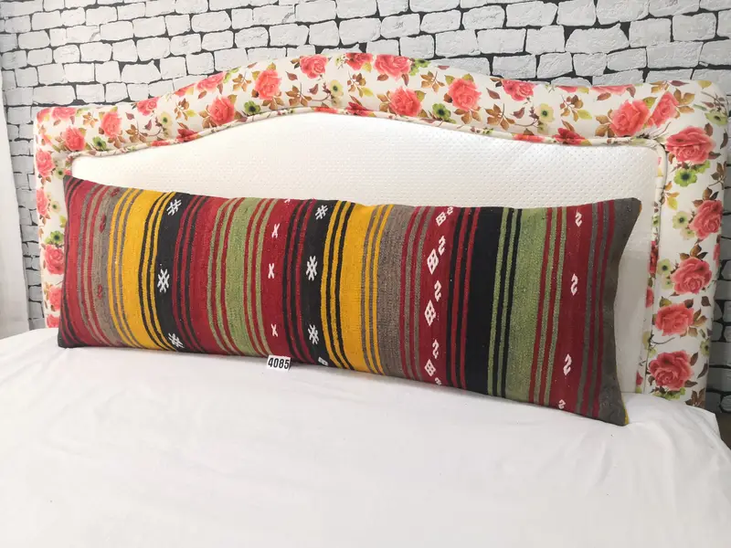 Handgefertigtes gestreiftes Wollkissen, Vintage besticktes rechteckiges Kissen