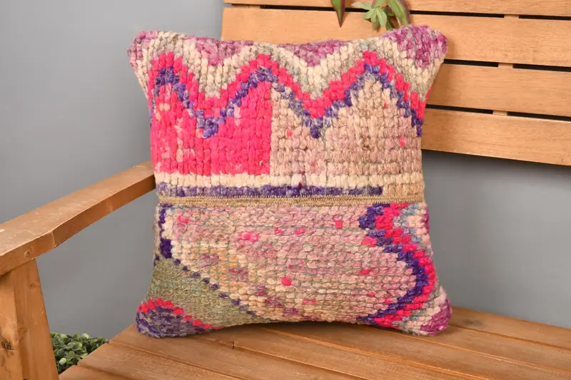 Gesticktes Patchwork-Wurfkissen, 16x16 Vintage-Quadratkissen