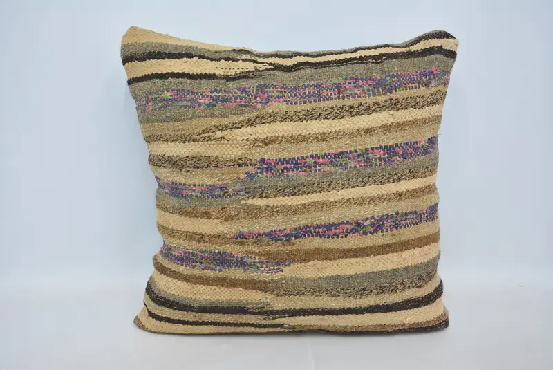 Blau & Beige gestreiftes Kissen, Vintage besticktes Kissen