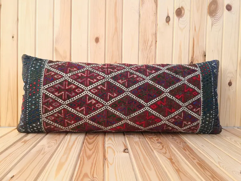 Handgefertigtes besticktes Wollkissen, geometrisches Vintage-Dekor