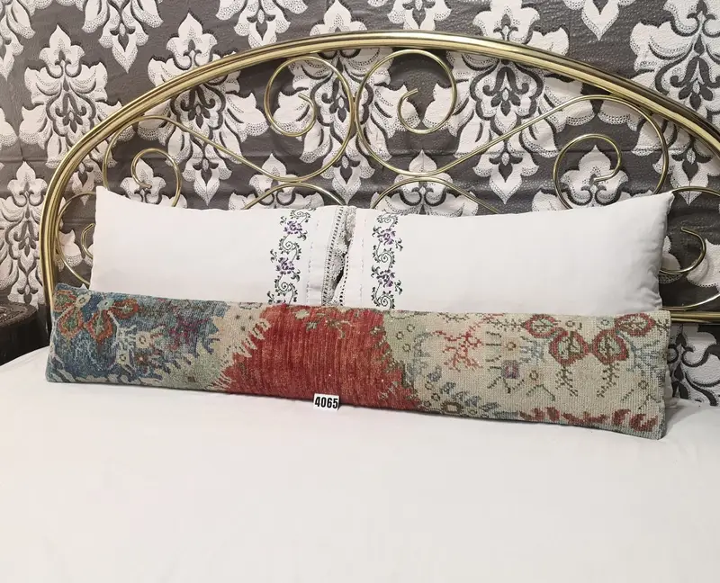 Rechteckiges rotes und bronzefarbenes Blumen-Wurfkissen aus Wolle, handgefertigter bestickter Kisseneinsatz