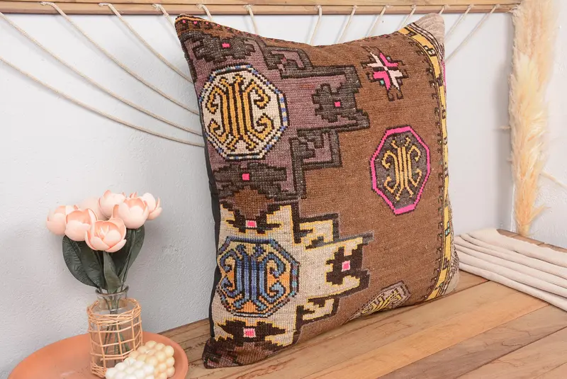 Handgefertigtes braunes Leinenkissen, 28x28 besticktes Wurfkissen