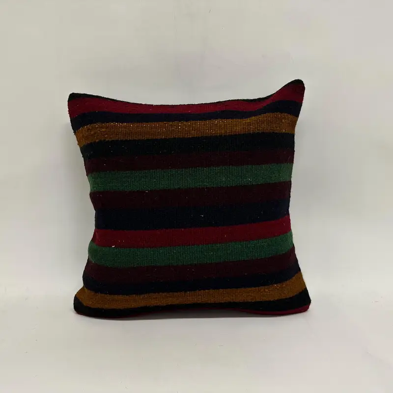 Gesticktes grün-braun gestreiftes Kissen, handgefertigtes Kissen