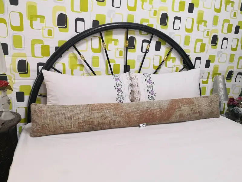 Handgefertigtes besticktes Wollkissen, Vintage-Kissen mit geometrischem Akzent