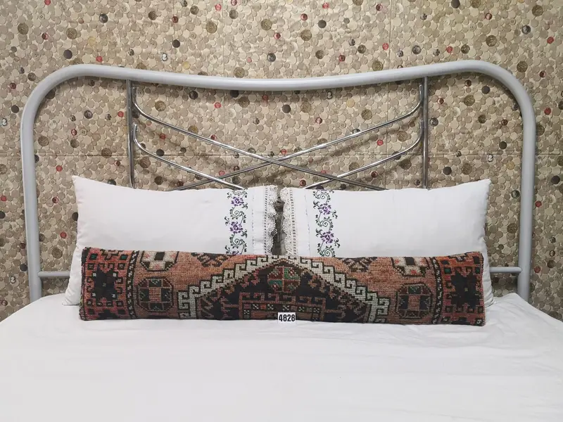 Geometrisches braunes und graues Wollkissen, handgefertigtes Vintage-Kissen