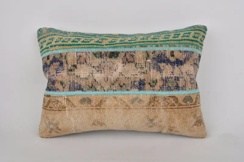 Patchwork-Wurfkissen in Beige und Bronze, 16 x 24 handgefertigtes Leinenkissen