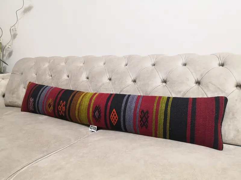 Rechteckiges rot-grün gestreiftes Wurfkissen, handgefertigtes Wollkissen