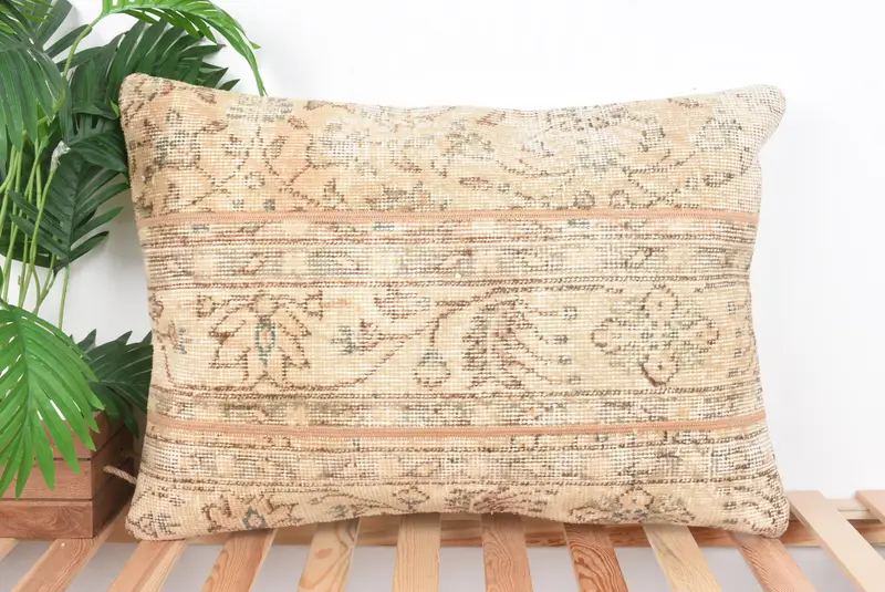 Beige & braun florales Kelimkissen, 20x28 Vintage Wurfkissen