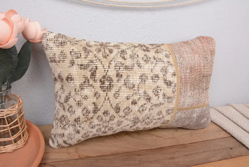 Beige & braunes Patchwork-Wurfkissen, handgefertigtes besticktes Kissen