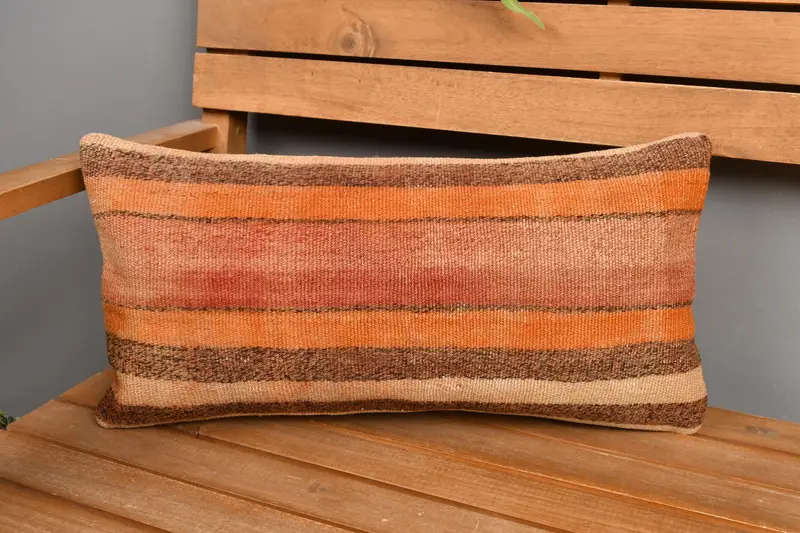 Rot & Beige gestreiftes Kissen, handgemachtes Kissen aus Leinen und Wolle
