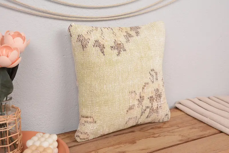 Handgefertigtes grünes und braunes Blumenkissen, Vintage besticktes Kissen