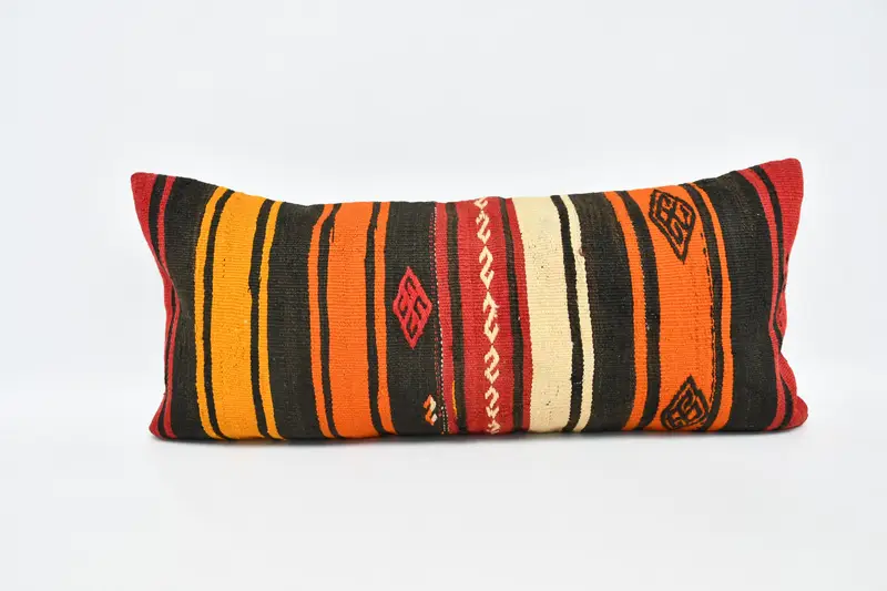 Orange & Rot 16x36 Wurfkissen, Vintage besticktes Kissen