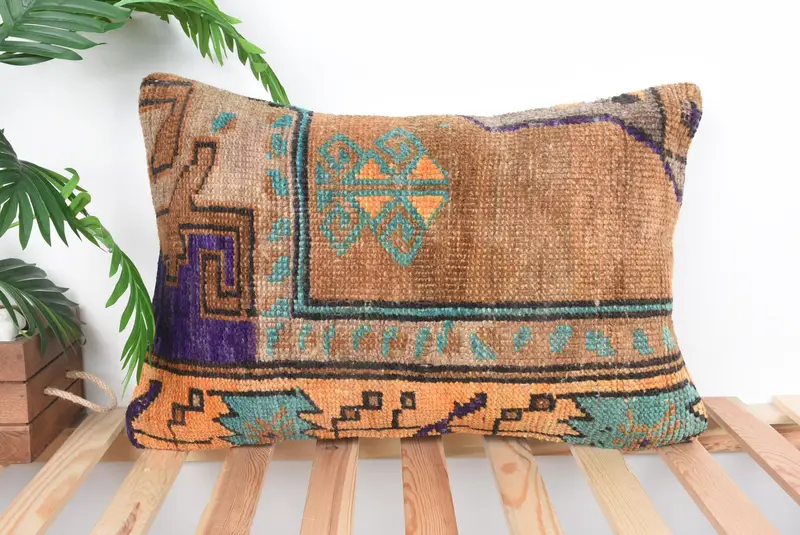 Braun & Orange besticktes Wurfkissen, Vintage Blumenkissen